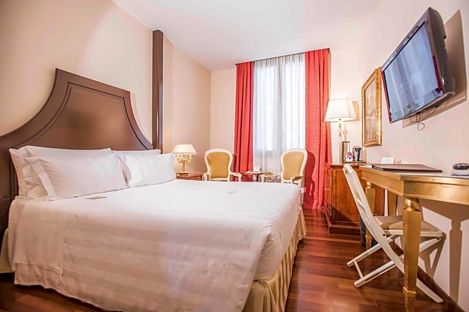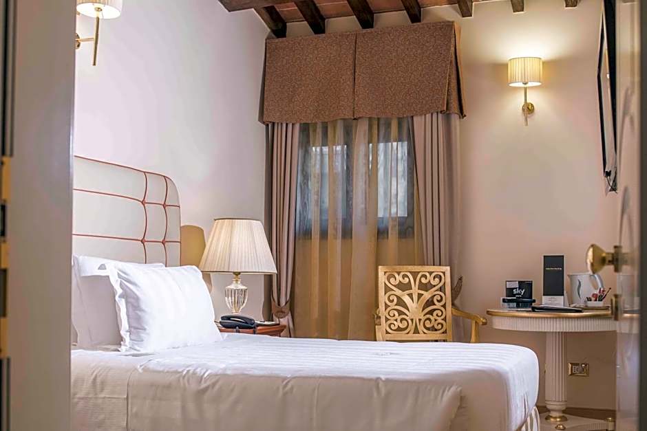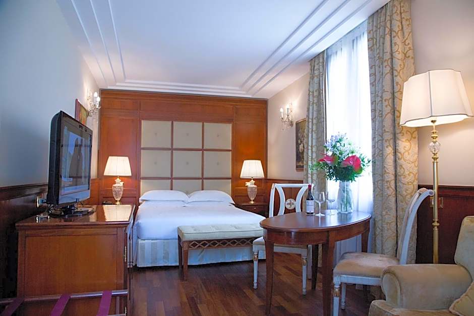 This double room has a mini-bar at an extra cost, a spa bath, soundproofing and welcome Florentine biscuits.